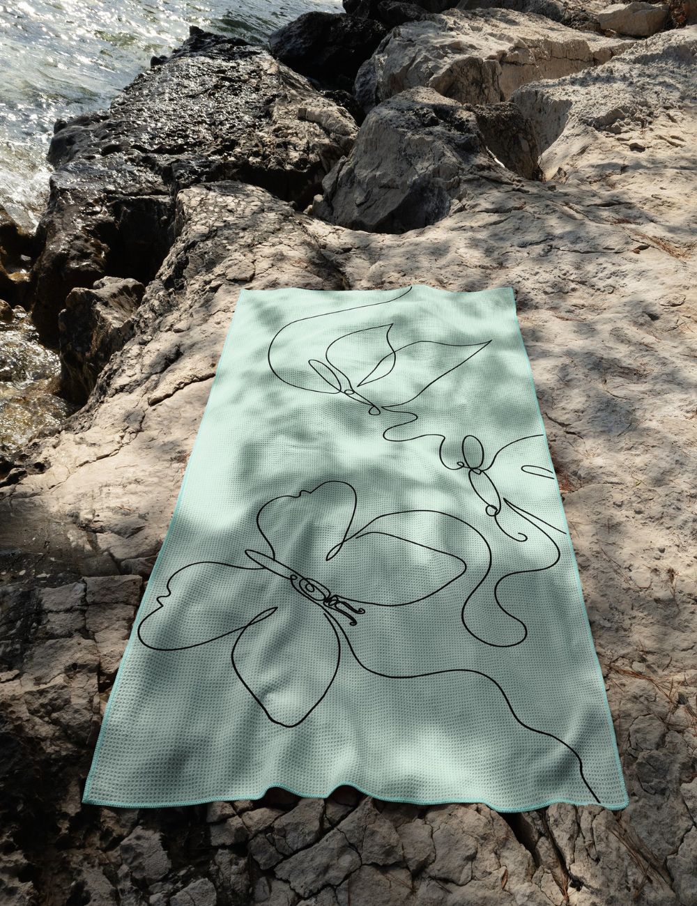 Fly into relaxation with the Whispering Wings towel — sand-free, quick-drying, and made from recycled microfibre.